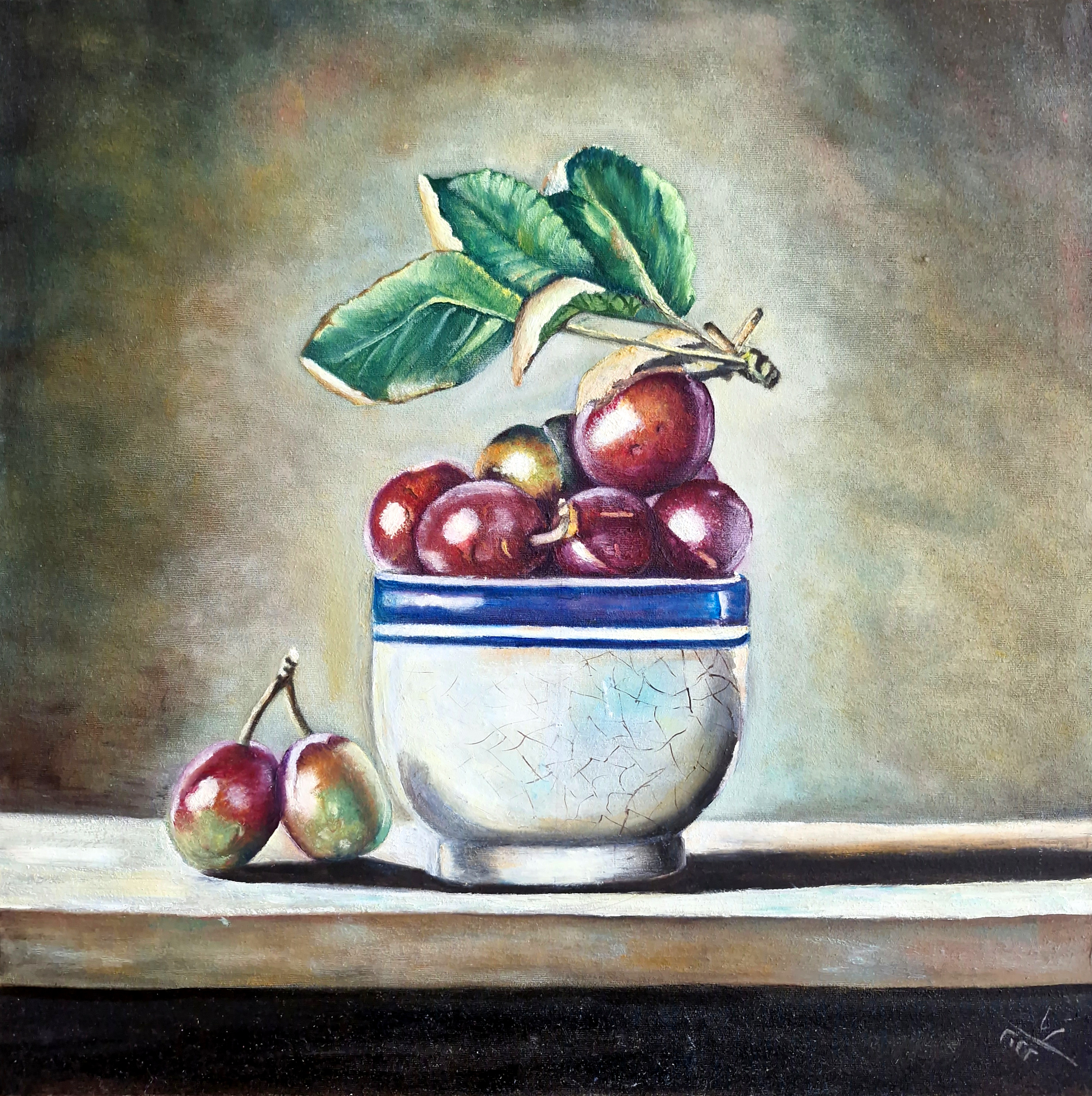 In the painting I titled Fall the fruits nestled in an antique bowl evoke the unforgettable tastes and scents of my childhood. This composition, especially reminiscent of the tables set by my grandmother's own hands, holds a deep emotional connection for me.