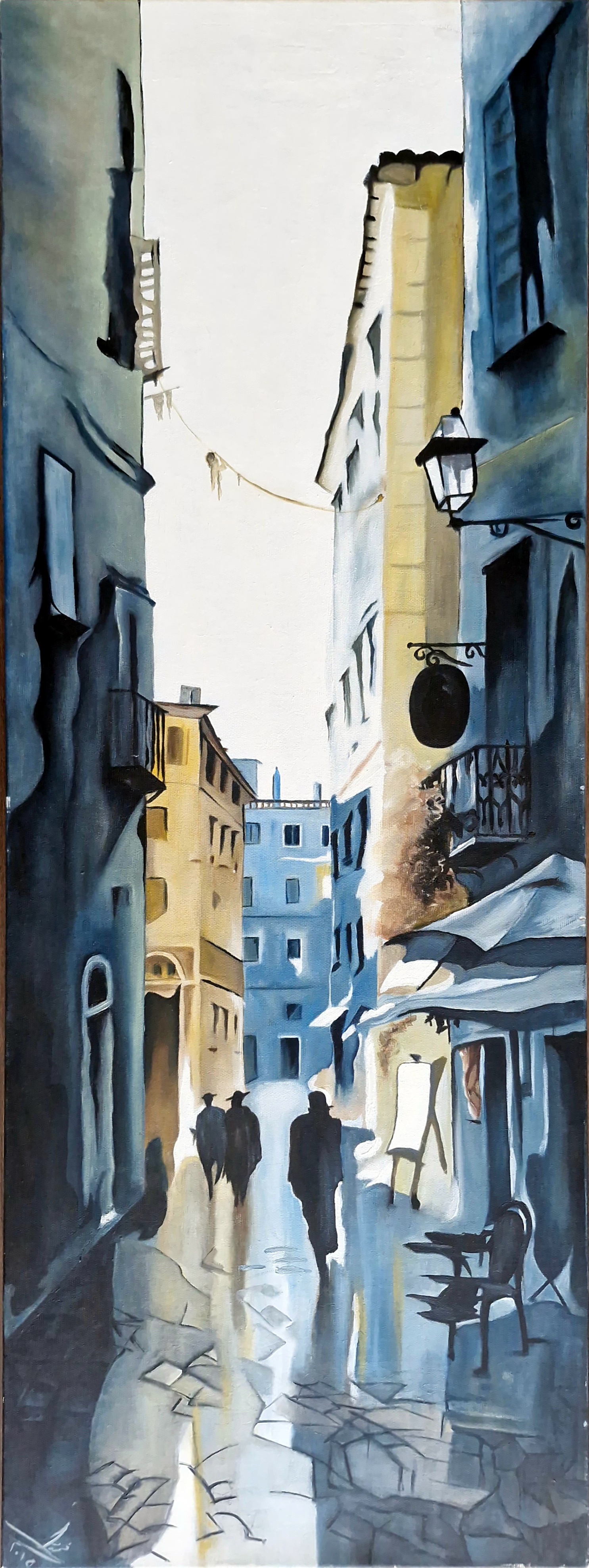 Titled Rain this piece is actually a reflection of my inner world. When I say I painted the reflection of rain on wet ground, I wanted to allude to the deep marks that life's experiences leave on us.