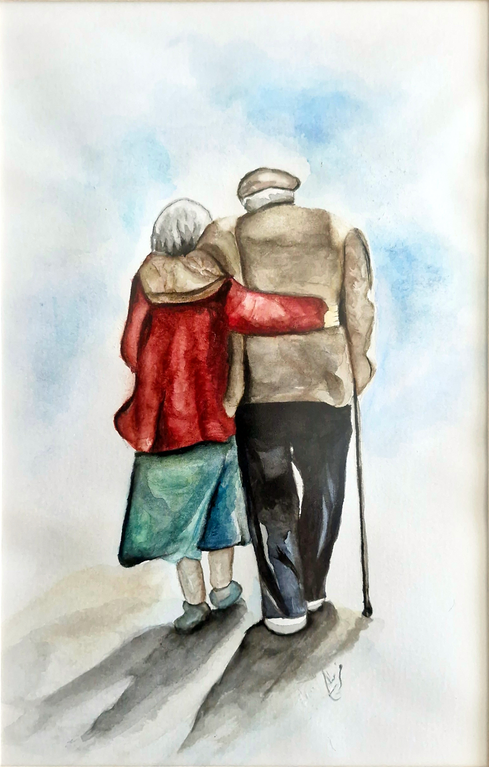 The painting I titled Togetherness holds a very special meaning for me. I used soft pastel tones to reflect the inner peace and warmth I felt. The two figures reaching out to each other with their hands symbolize the deep connection I've been searching for throughout my life. This painting is not just a picture; it's also a mirror reflecting the beautiful moments I've shared with my loved ones. I especially wanted to portray the tranquility I felt when I was with my father.